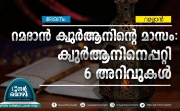 “തീര്ച്ചയായും നാം ഇതിനെ അഥവാ ഖുര്ആനിനെ നിര്ണയത്തിന്റെ രാത്രിയില് അവതരിപ്പിച്ചിരിക്കുന്നു. നിര്ണയത്തിന്റെ രാത്രി എന്നാല് എന്താണെന്ന് നിനക്കറിയാമോ? നിര്ണയത്തിന്റെ രാത്രി ആയിരം മാസത്തെക്കാള് ഉത്തമമാകുന്നു. മലക്കുകളും ആത്മാവും അവരുടെ...